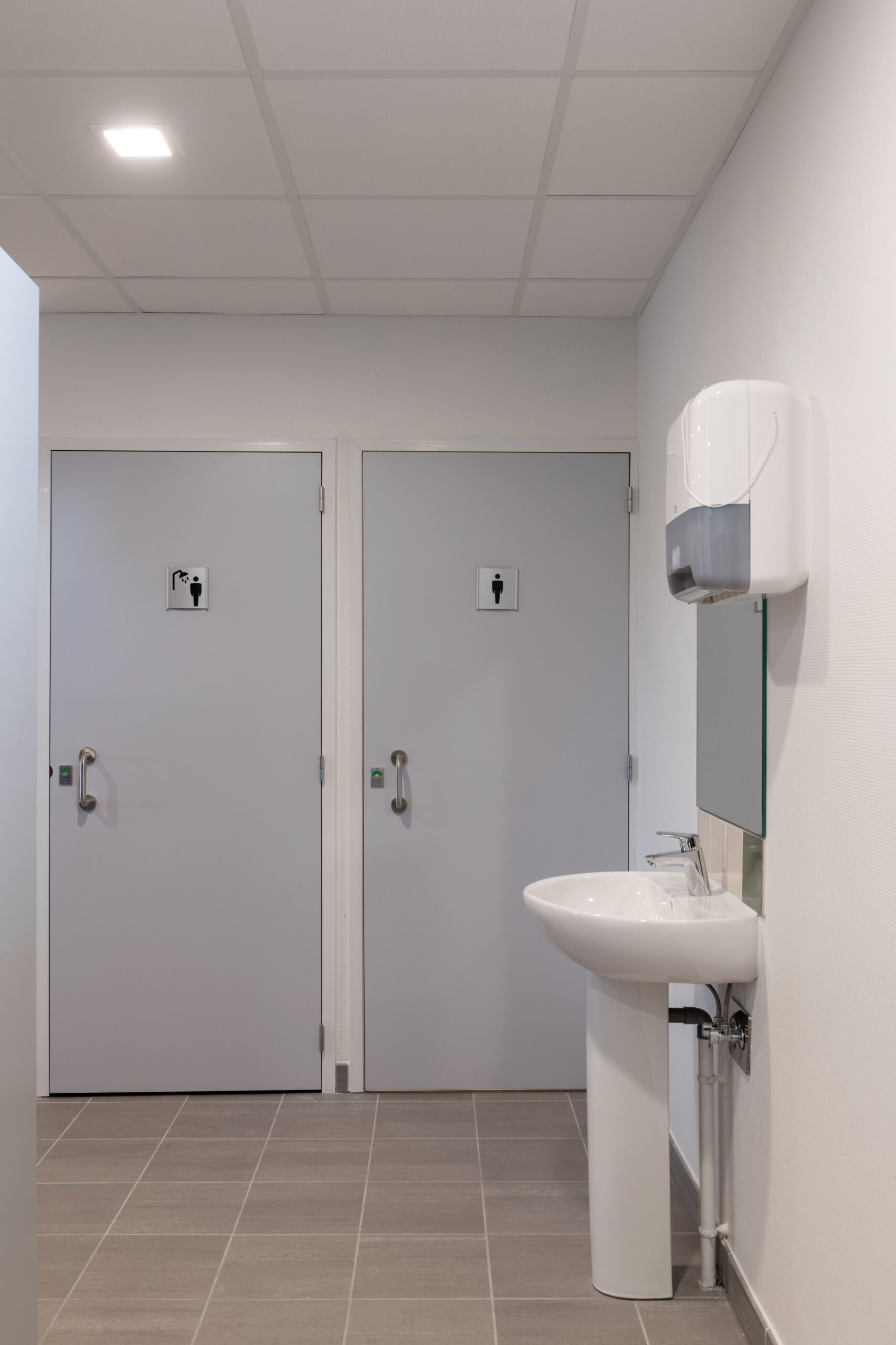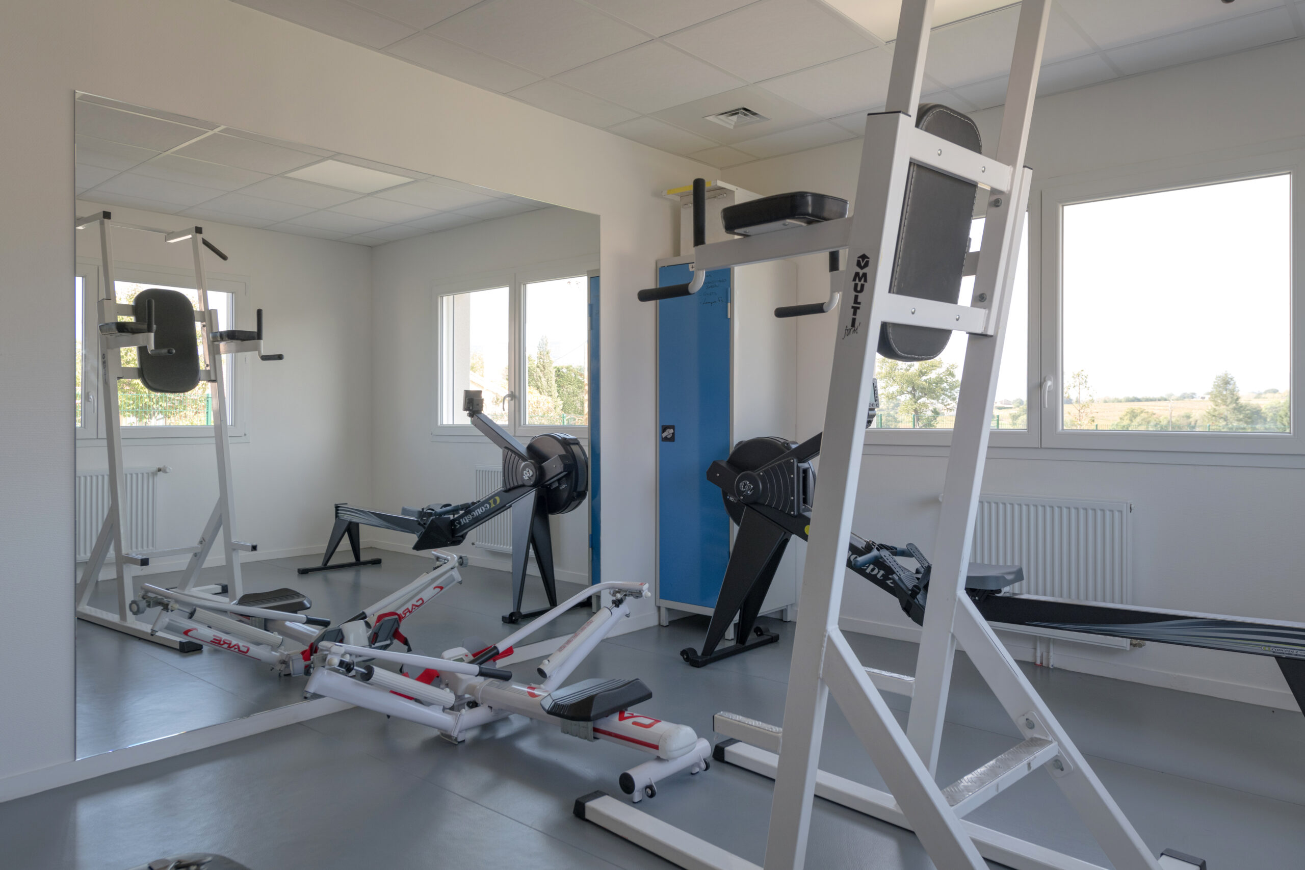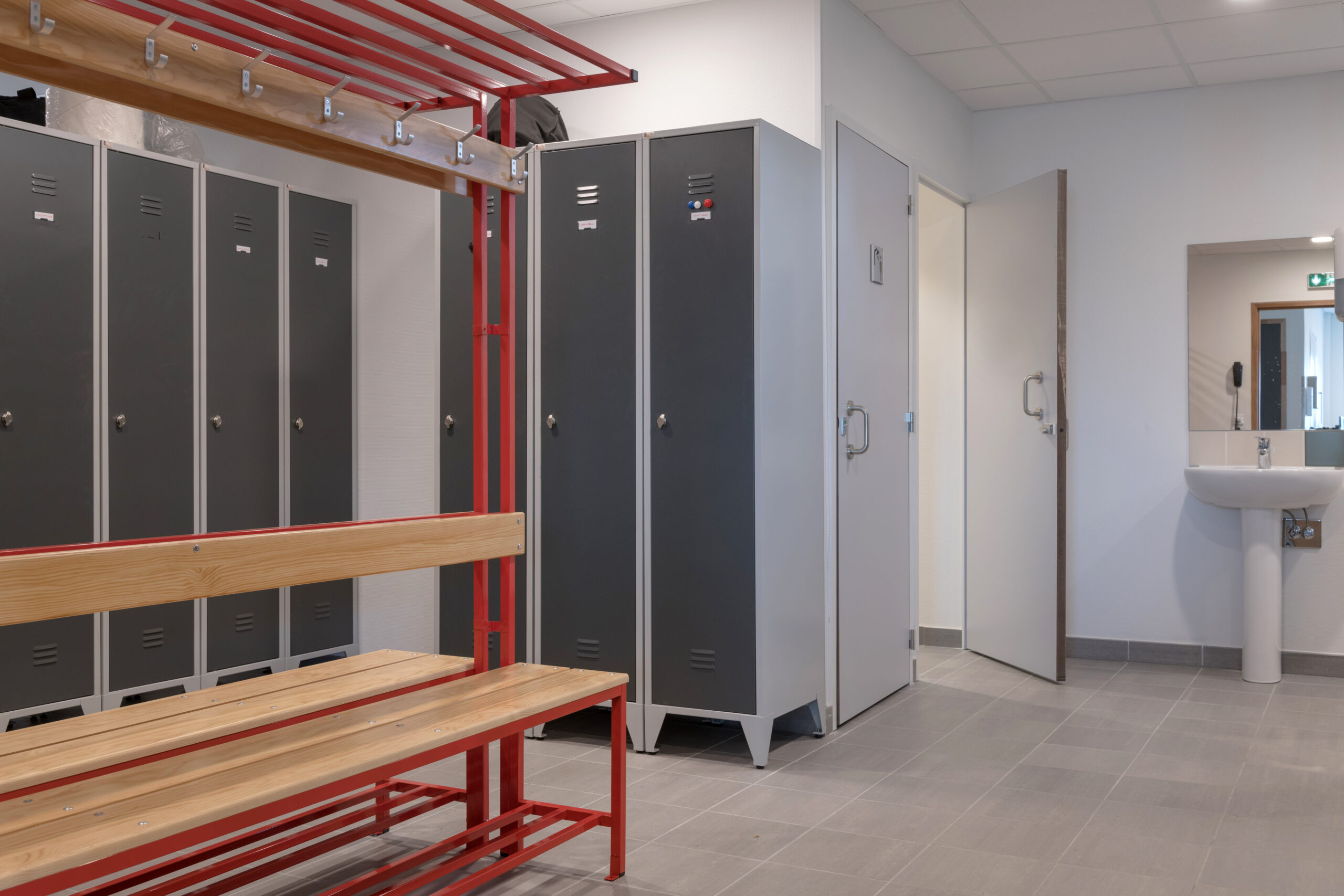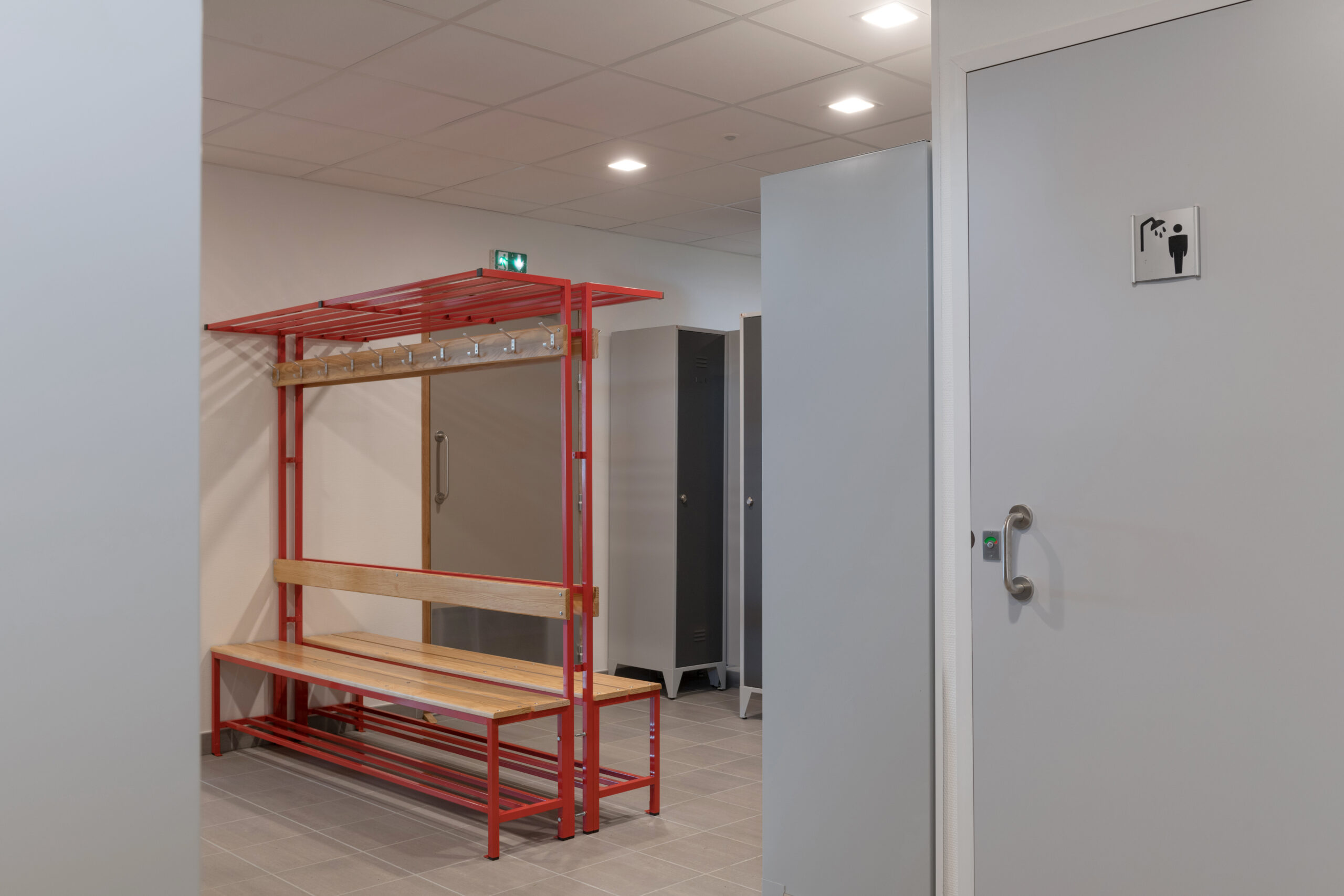 Le bâtiment est également composé de vestiaires, d’une salle de réunion / formation et d’une salle d’entretien physique.