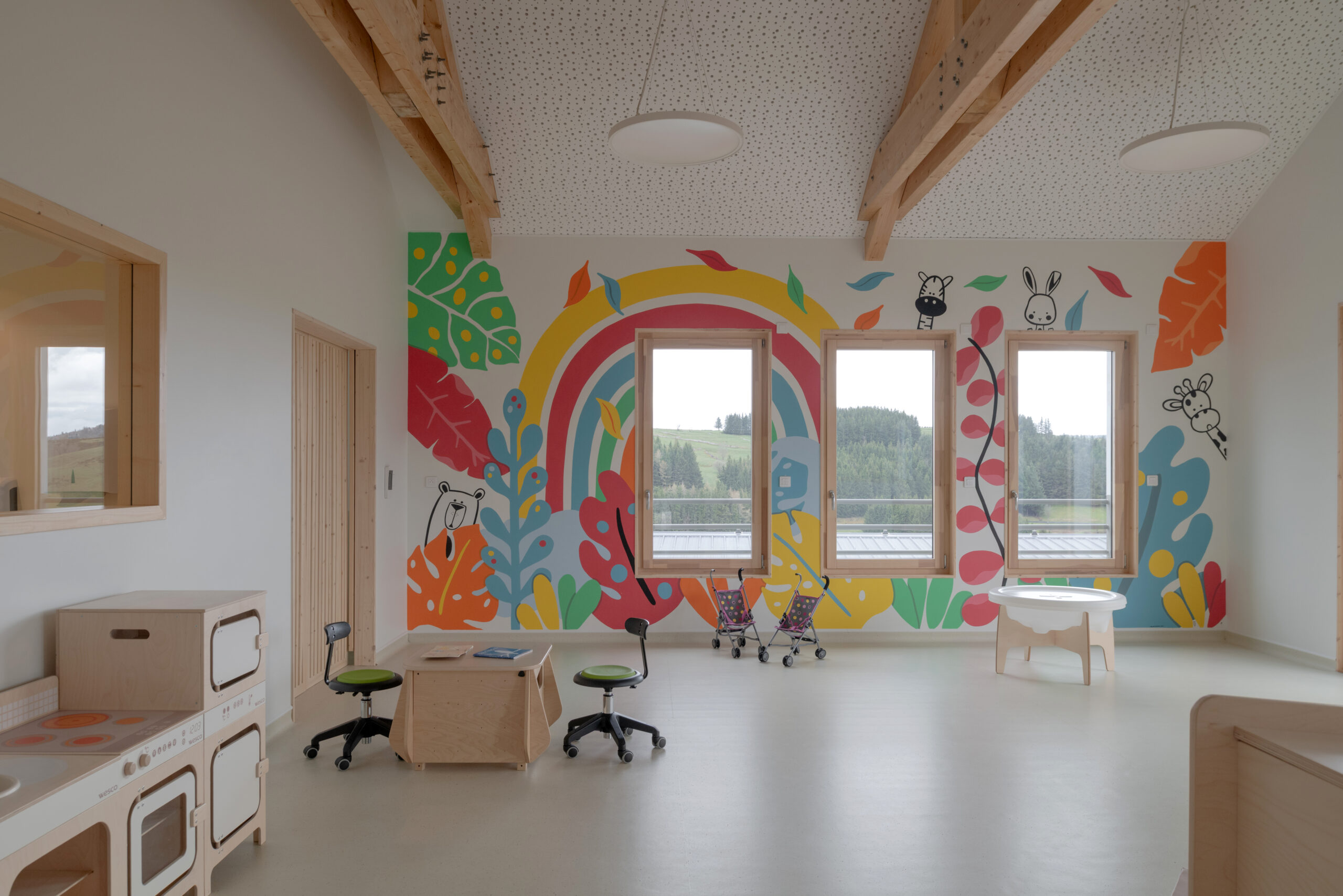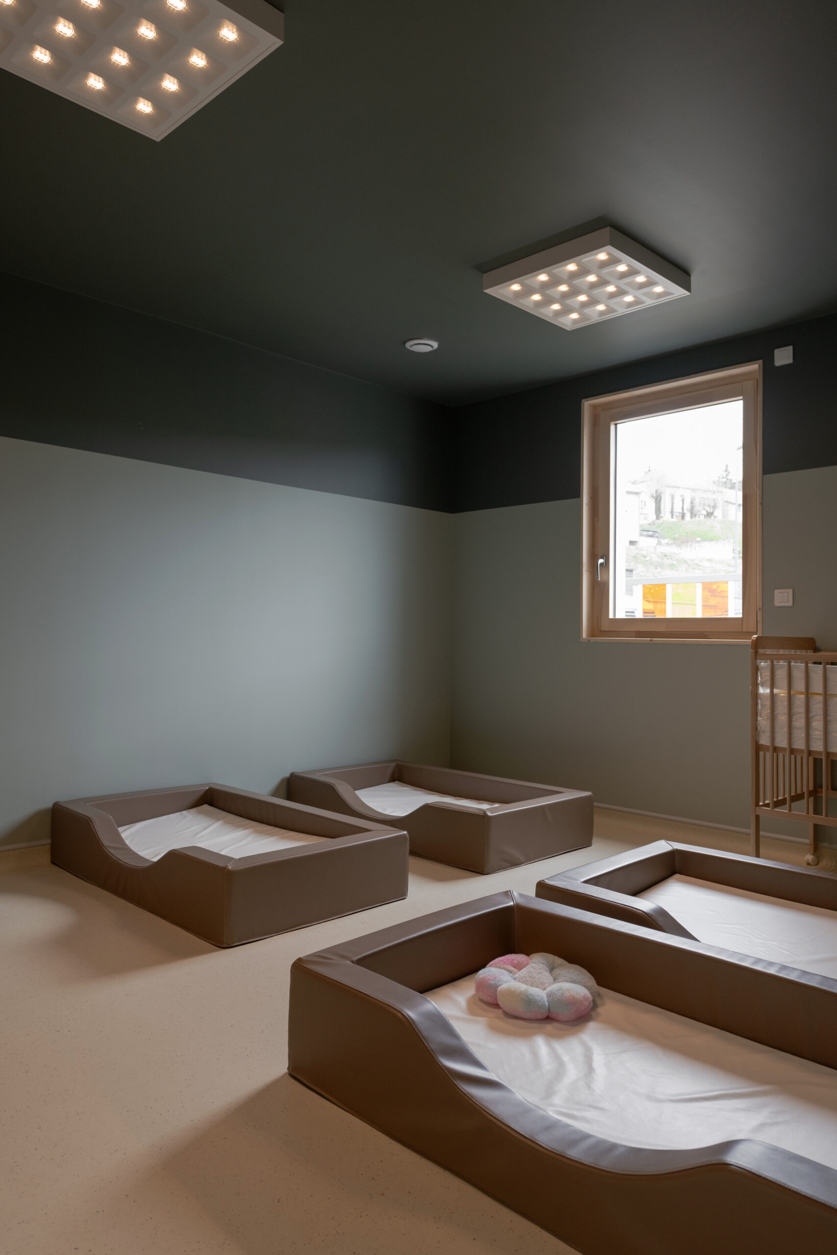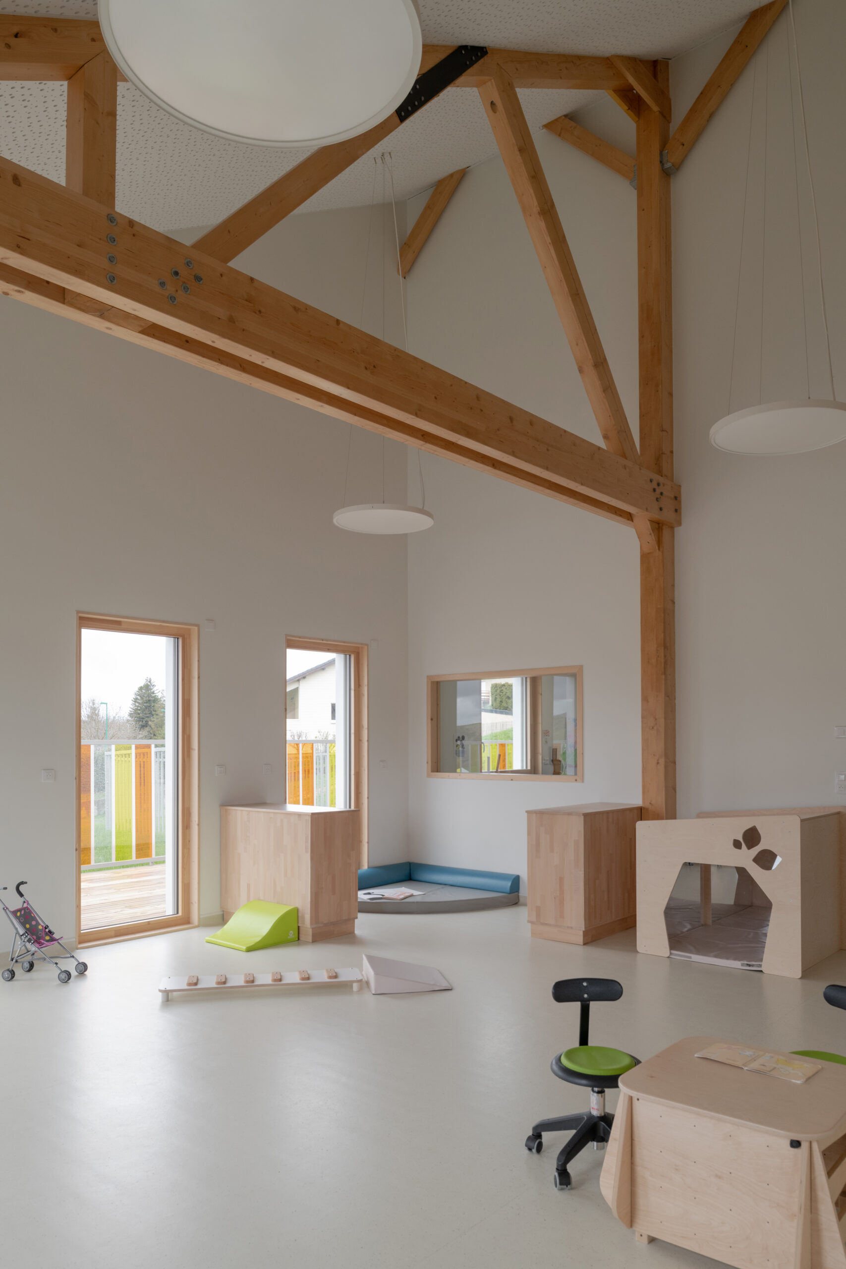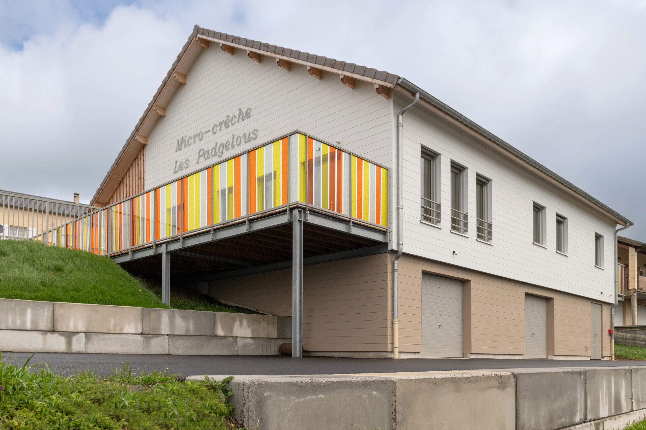 Pour cette micro-crèche municipale, nous proposons un bâtiment construit sur deux niveaux avec l’esthétique d’une maison individuelle familiale. En effet, le bâtiment est construit au sein d’un lotissement à caractère résidentiel.