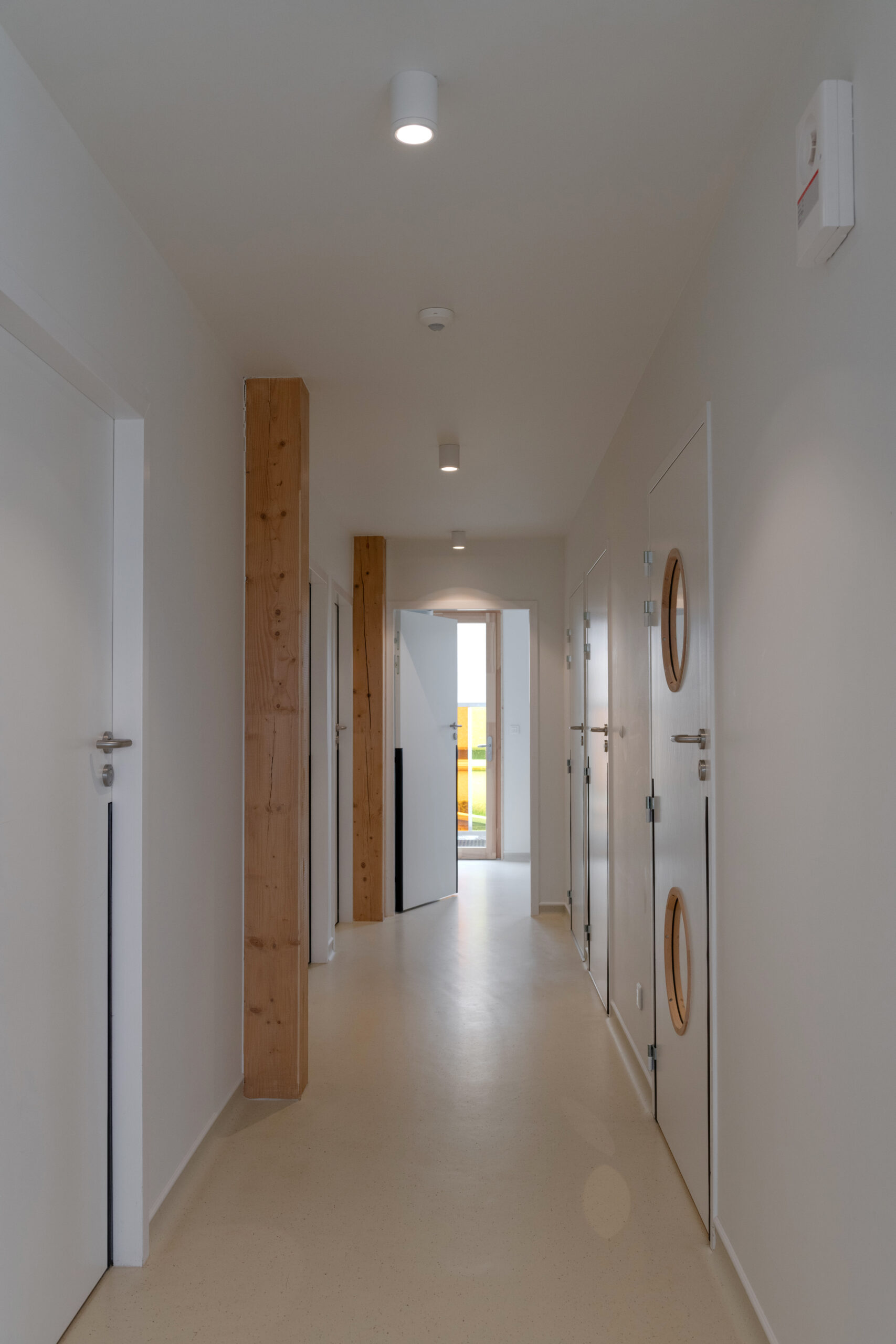 Une forte démarche environnementale nous a amenés à choisir une construction en ossature bois, une isolation en laine de bois pour les murs et en ouate de cellulose pour la toiture, le tout combiné à une chaufferie à granulés. Les menuiseries sont en bois avec un capotage extérieur en aluminium, permettant de limiter l’usure dans le temps et l’entretien.