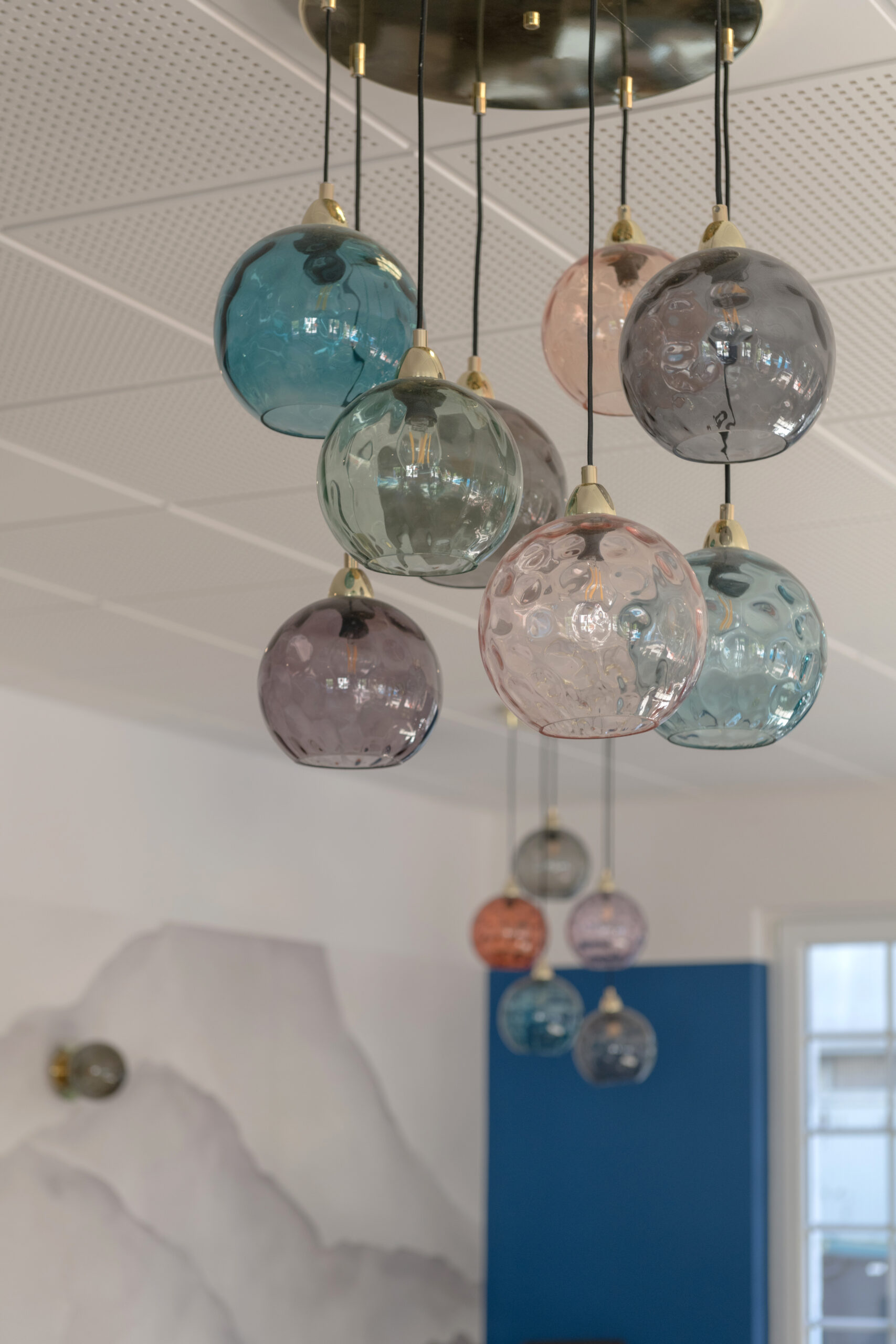 Une touche de couleur chaude est apportée par les suspensions et appliques de la collection Ilaria, reprenant parfaitement les différentes teintes présentes dans le lieu. Nous retrouvons ces luminaires dans la partie bar et petit déjeuner.