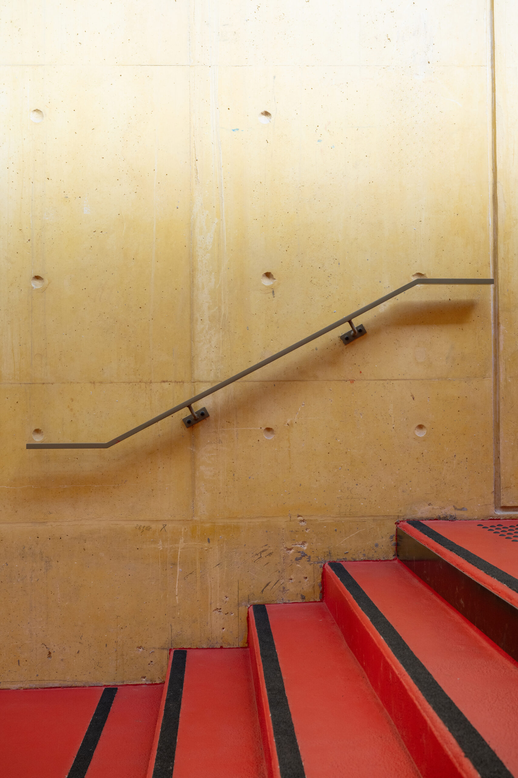 – Mise aux normes des escaliers du site : ajout de mains courantes, prolongement des mains courantes, pose de nez de marches, contremarches contrastées, pose de bandes d’éveil à la vigilance.