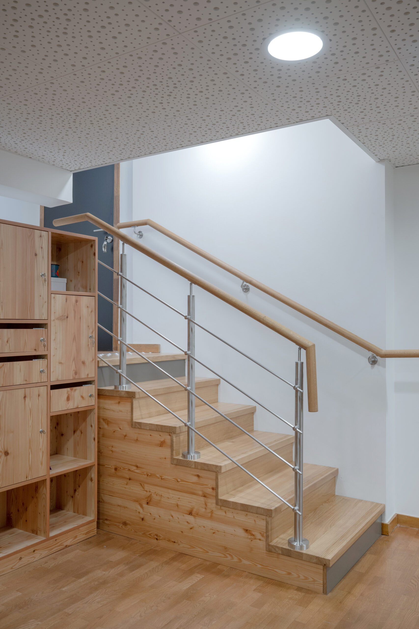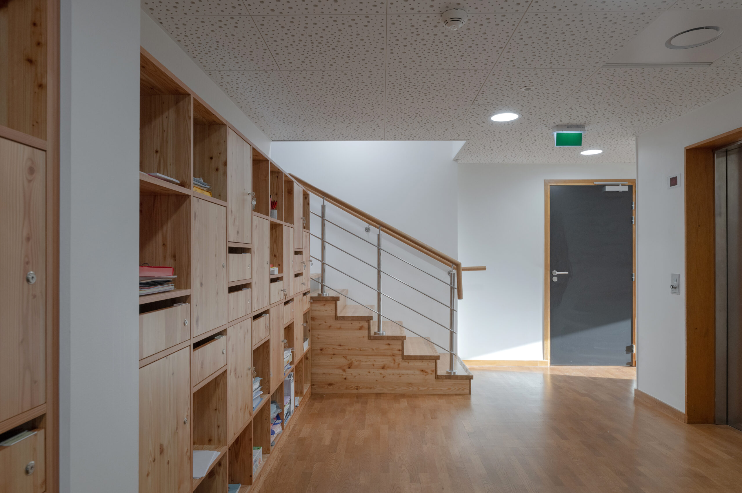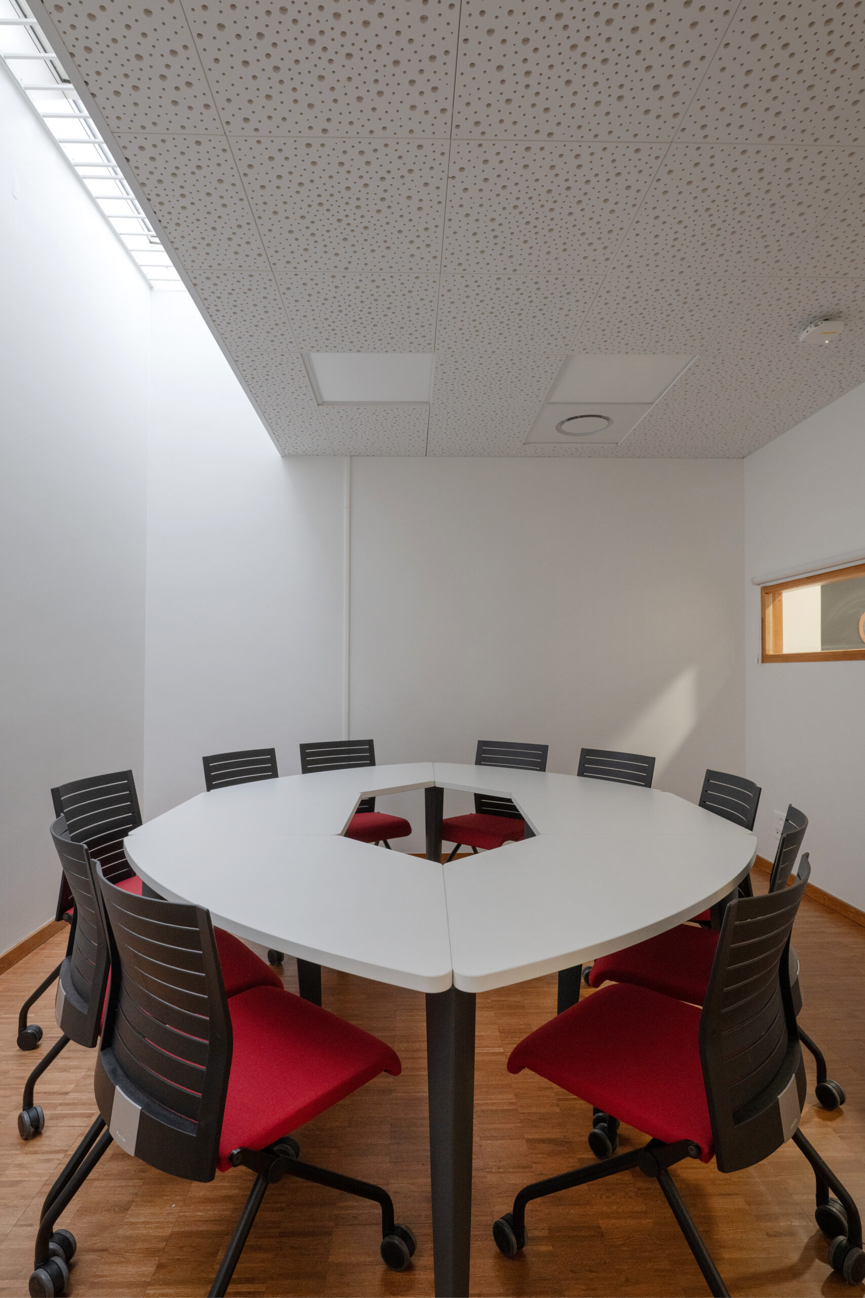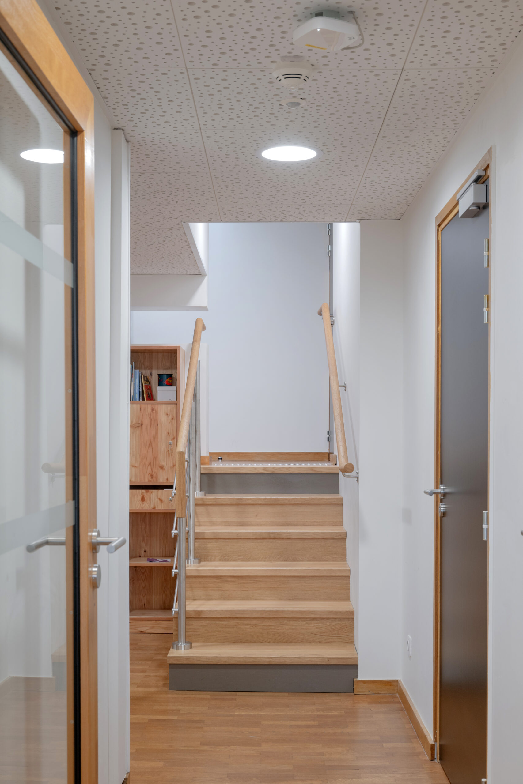 Dans le but de réunir sur un seul lieu l’ensemble des conseillers pédagogiques départementaux, un ancien logement de fonction et une mezzanine, situés au 6ème étage, sont entièrement repensés en espace de travail optimisé.