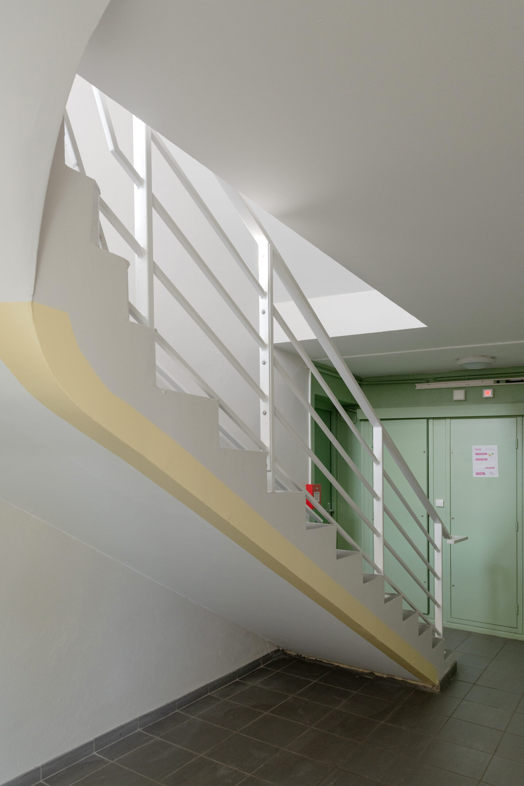 Le second bâtiment (32 et 34 de la même rue) se décompose en 2 allées desservant elles aussi 2 logements par niveau, soit 20 logements.