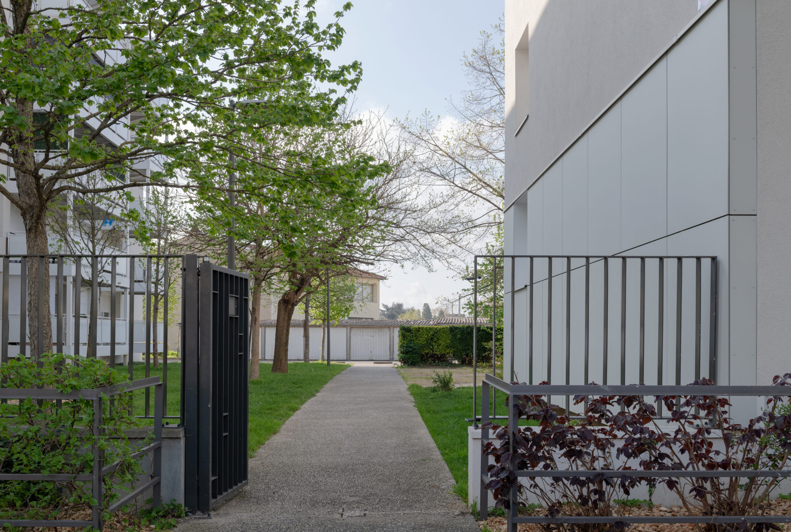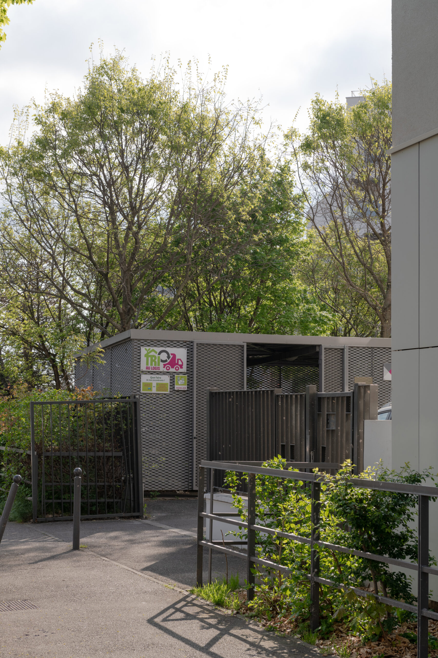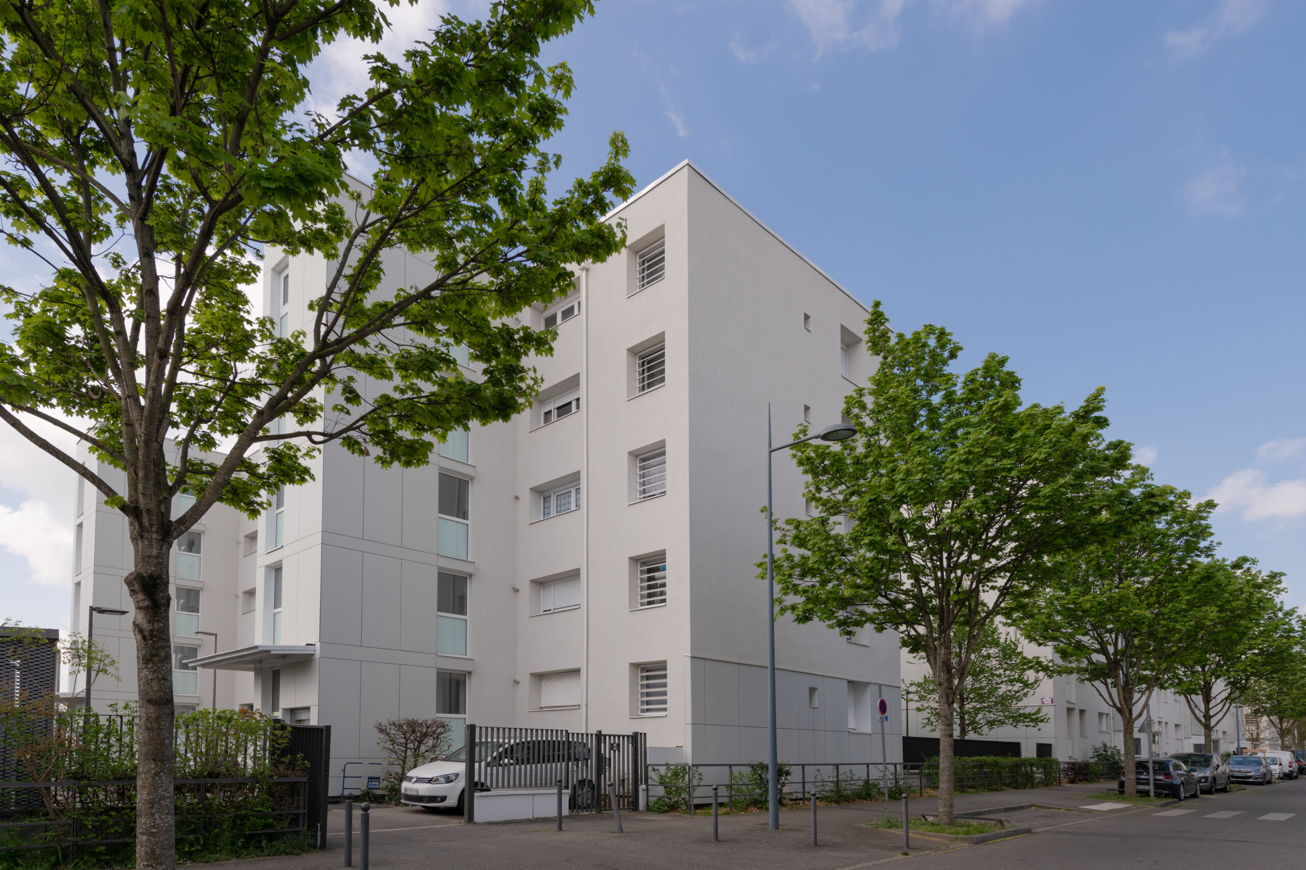 Ces bâtiments disposent également d’un niveau de sous-sol. La résidence, située à l’entrée Est du quartier, donne directement sur la rue de la Poudrette. Un petit parc, des places de parking en surface et des boxes relient les 2 bâtiments.