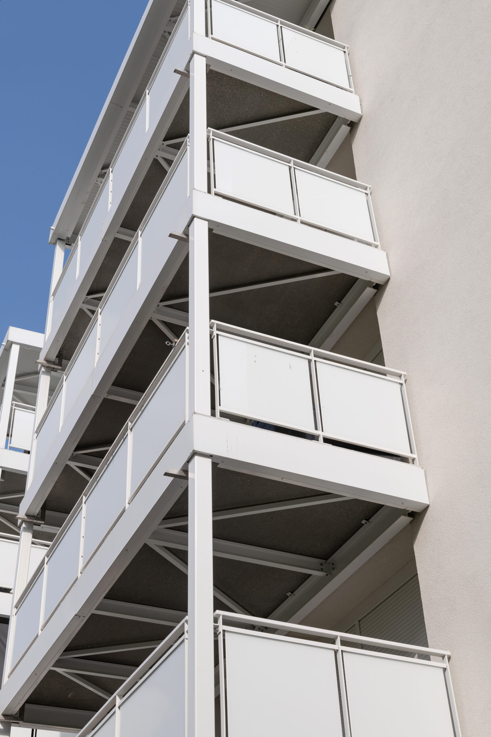 Divisée en deux bâtiments de 5 niveaux dotés d’un rez-de-chaussée surélevé, la résidence offre 50 logements. Le premier bâtiment (26, 28 et 30 rue Ravanel), est décomposé en 3 allées desservant chacune 2 logements par niveau, soit 30 au total.